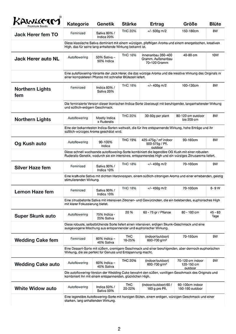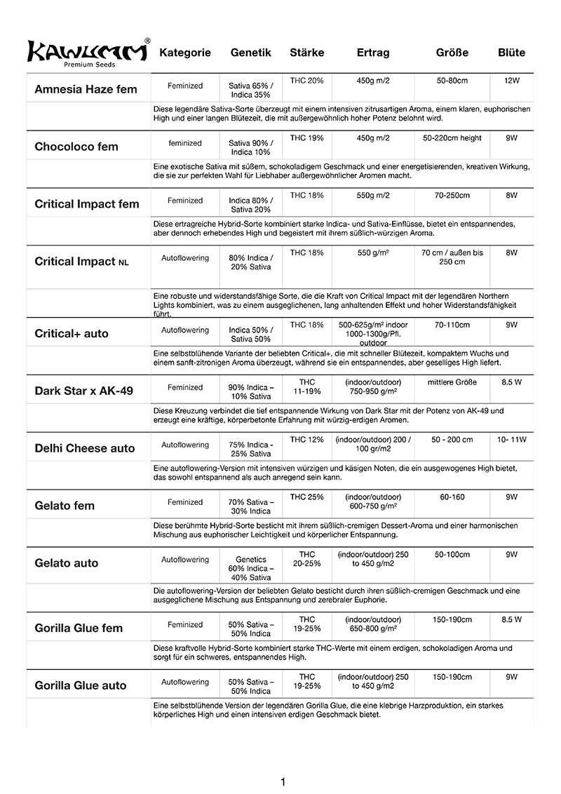 Aromen, Wirkungen und Anbaueigenschaften findest Du in der Übersicht auf dieser Seite. Kawumm liefert Qualität seit 1989